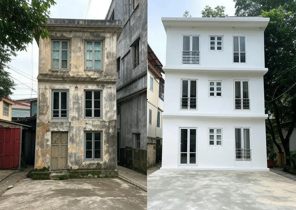 Tường nhà cũ thường gặp nhiều vấn đề như vết nứt, rêu mốc hay lớp sơn bong tróc. Để xử lý hiệu quả, chúng tôi thực hiện hai bước chính: